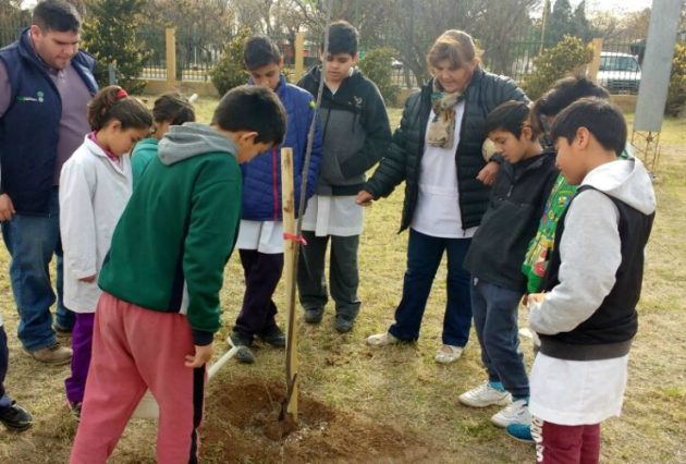 Con esta iniciativa se pretende llenar de verde los colegios con especies frutales y forestales. Las acciones iniciaron en las Escuela Nº 441 “Capitán de Fragata Don Pedro Eduardo Giachino”, de San Gerónimo, y en la Nº 141 “Los Andes”, ubicada en la localidad de Balde.